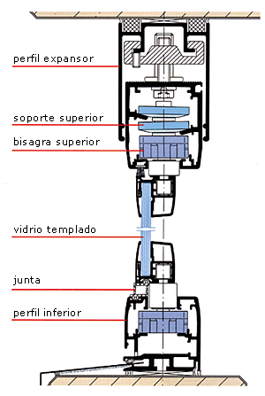 Entre el techo y el perfil superior del sistema y entre el suelo o barandilla y el perfil inferior del sistema queda una apertura. Es normal, ya que los techos, suelos, barandillas, muros no están totalmente al nivel. Para nivelar el acristalamiento se emplean cuñas o calzos. La apertura depende del desnivel de los elementos arriba mencionados. La apertura mencionada se suele tapar/sellar con masa de sellar/chapas/pletinas u otro material según la necesidad de la obra. El sistema LUMON siempre se instala a nivel, independientemente de los desniveles de la obra.
